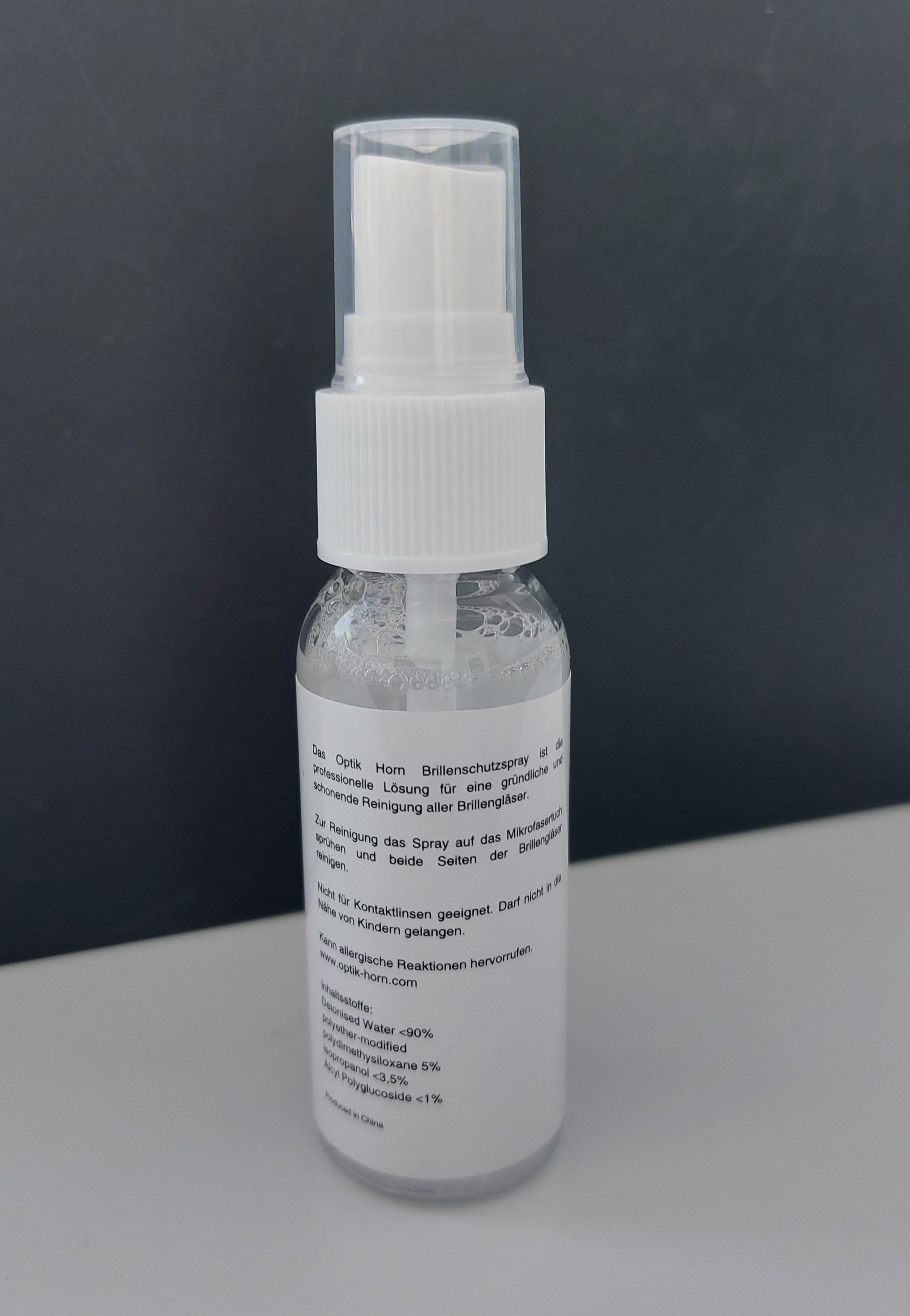 Kleine und praktische Pumpsprühflasche zum Reinigen von Brillengläsern aller Art.
